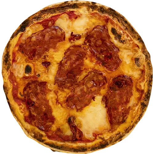 tomato sauce, mozzarella fior di latte, Italian salami spianata picante, chili peppers 🌶️